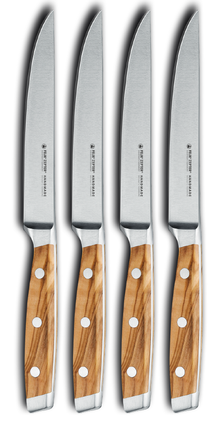 Auf der Suche nach einem Geschenk für Steakliebhaber? Dann liegen Sie mit diesem Messer-Set der Serie FIRST CLASS WOOD genau richtig. Die Messer gleiten durch das Fleisch, zerreißen aber nicht die Fleischfasern. Wer einmal sein Fleisch mit einem Steakmesser geschnitten hat, der will nie wieder ein anderes Messer dafür benutzen.
