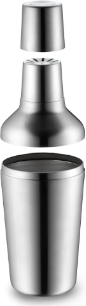Überraschend funktional! -Das Set enthält einen Shaker mit integriertem Barsieb, Eiszange und einen Stößel. Das Sieb hält Eis und Fruchtstücke zurück. Verschluss und Barmaß zugleich für 2 cl und 4 cl. Vier Bargeräte kompakt verpackt - kein langes Suchen der Einzelteile, da alle Accessoires in den Shaker passen! :-)))) Spülmaschinengeeignet, formstabil, hygienisch, säurefest und unverwüstlich. |